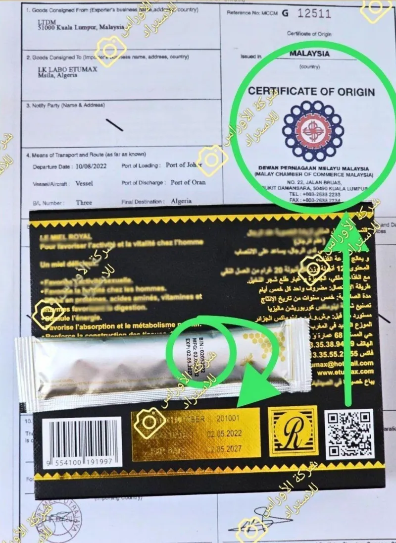 كما سبق لنا شرحه فى الفديو لشركة الاوراس للاسترادا وكما هو موضح في الصورة اسكاني الكود يجب ظهور الوثيقة الرسمية للاستراد البلد المنشأ مالزيا بالخاتم و الامضاءكما هو موضح